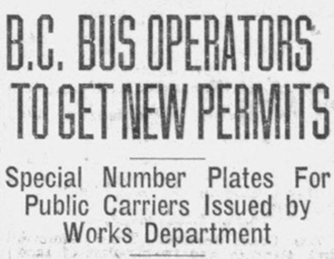 By the mid-1930s, the province had begun to receive numerous complaints from licensed carriers regarding encroachment on their businesses by "fly-by-night" operators.