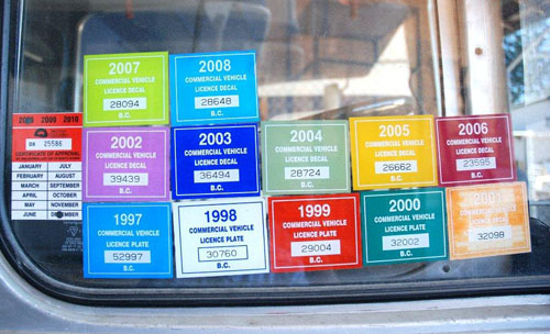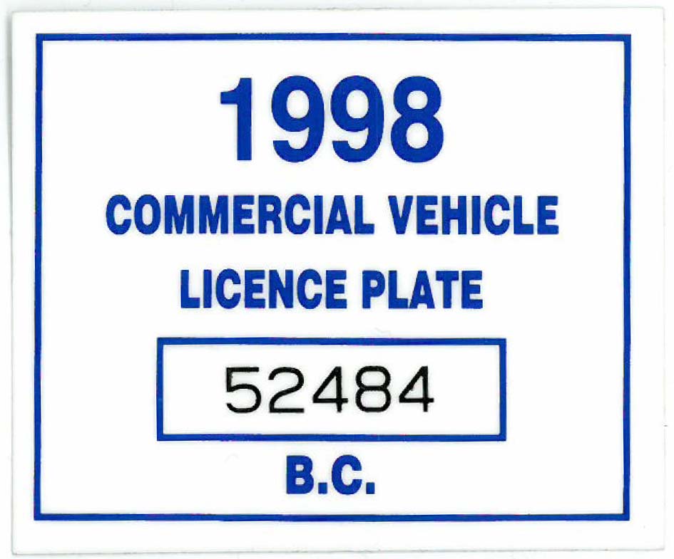 In 1987, the license plates were replaced with a single, province-wide decal. In that same year, the Union of British Columbia Municipalities (UBCM) assumed administration of the Commercial Vehicle Licence Program from the provincial government. |