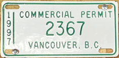 Antique | APEC | BC Parks | Chauffeur Badges | Collector | Commercial Truck | Consul | Dealer | Decals | Driver's Licences | Farm | Ham Radio | Industrial Vehicle | Keytags | Lieutenant Governor | Logging | Manufacturer | Medical Doctor | Memorial Cross | Motive Fuel | Motor Carrier | Motorcycle | Movie Props | Municipal | National Defence | Off-Road Vehicle | Olympics | Passenger | Personalized | Prorated | Prototype | Public Works | Reciprocity | Repairer | Restricted | Sample | Special Agreement | Temporary Permits | Trailer | Transporter | Veteran | Miscellaneous