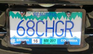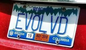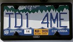 Plate on the restored Terry Fox Ford Econoline Camper van |