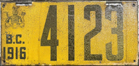 The highest BC plate recorded as having been issued in 1917 was the No. 13,015, which was issued to a Mr Judson Clark of 2847 Alder Street in Vancouver on December 31, 1917. We have strong reason to believe, however, that this was likely issued on a 1918 license plate. |