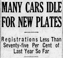 On January 7th, demand for license plates in New Westminster was 50% below what it had been at the same point in 1931 and in Victoria 42% fewer cars were registered on January 18th.