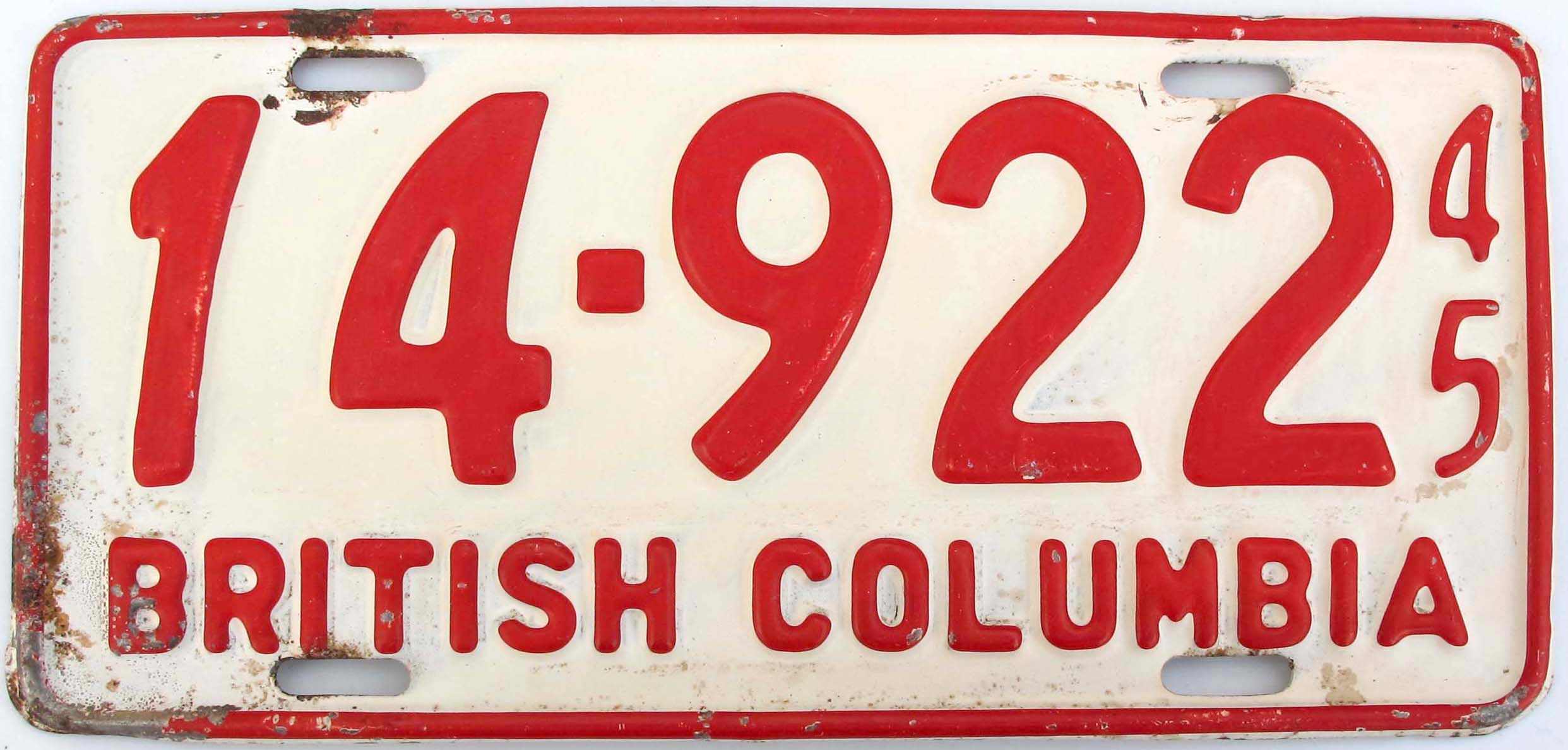 This was enough to spur British Columbia to announce on December 31, 1941, that motorists would only be receiving a single license plate for 1942 as this would save approximately 40 tons of steel: