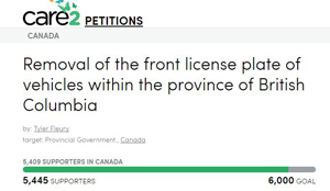 Case closed, one would think ... but no. In April of 2016 an online petition was started "for the removal of front licence plates within the province of British Columbia" (and garnered some unquestioning media coverage). The reason for the petition? According to the petitioner, they "serve no purpose" - which we think is an unsubstantiated claim that is demonstrably false (see our comments above). In addition, the petitioner claims that front plates,
