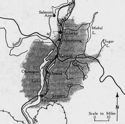 the Ashnola River to the 49th parallel, and the Okanagan Valley